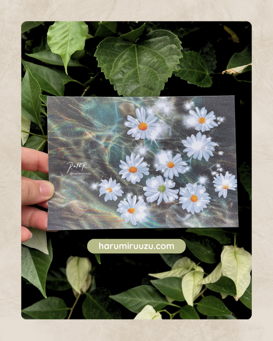 “Daisies in Water” Glitter Laminated Art Print - Original Art by Ruth Santos Regalado