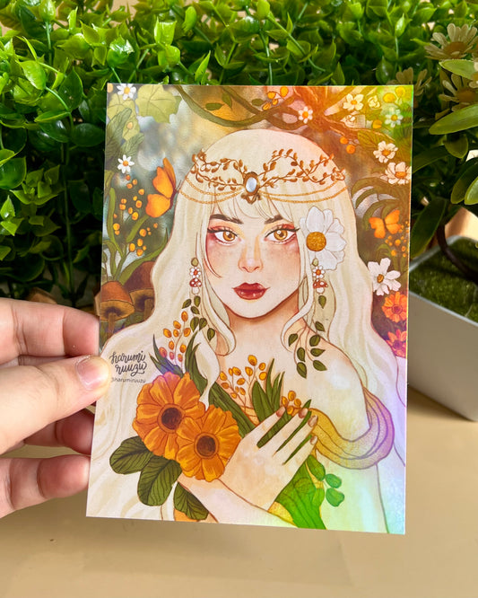 “Forest Queen” Holographic Rainbow Laminated Art Print - Original Art by Ruth Santos Regalado