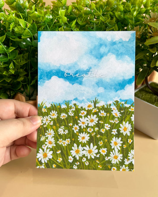 “Breathe” Daisy Field Glitter Laminated Art Print - Original Gouache Art by Ruth Santos Regalado