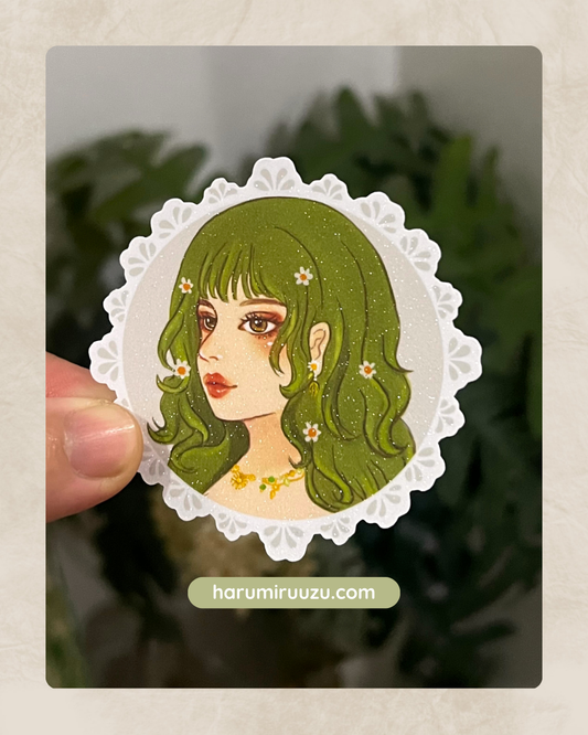 “Daisy Girl” Glitter Laminated Sticker — Original Art by Ruth Santos Regalado