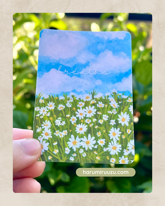 “Breathe” Daisy Field Glitter Laminated Sticker — Original Gouache Art by Ruth Santos Regalado